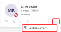 In Teams, you can block or unblock anyone outside your org who uses Teams, Teams for personal use, Skype (for consumers), or Skype for Business. Â