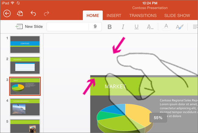 Tap the slides in the navigation pane. |
