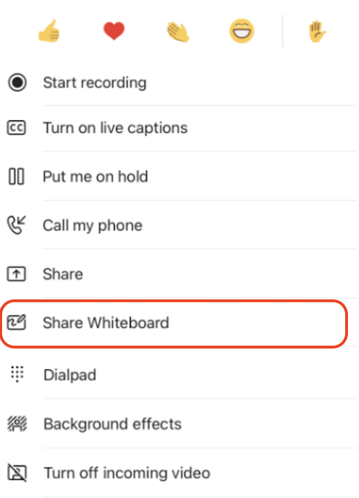 Select Share Whiteboard from the list of options.