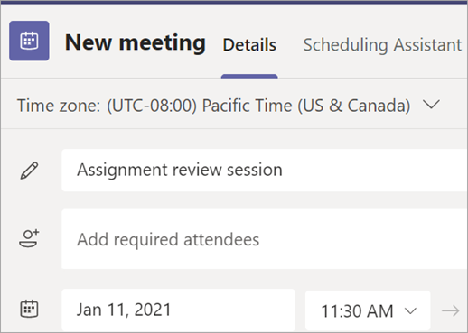 Type in names of individual attendees, or select Add channel to select a class team channel to meet in.